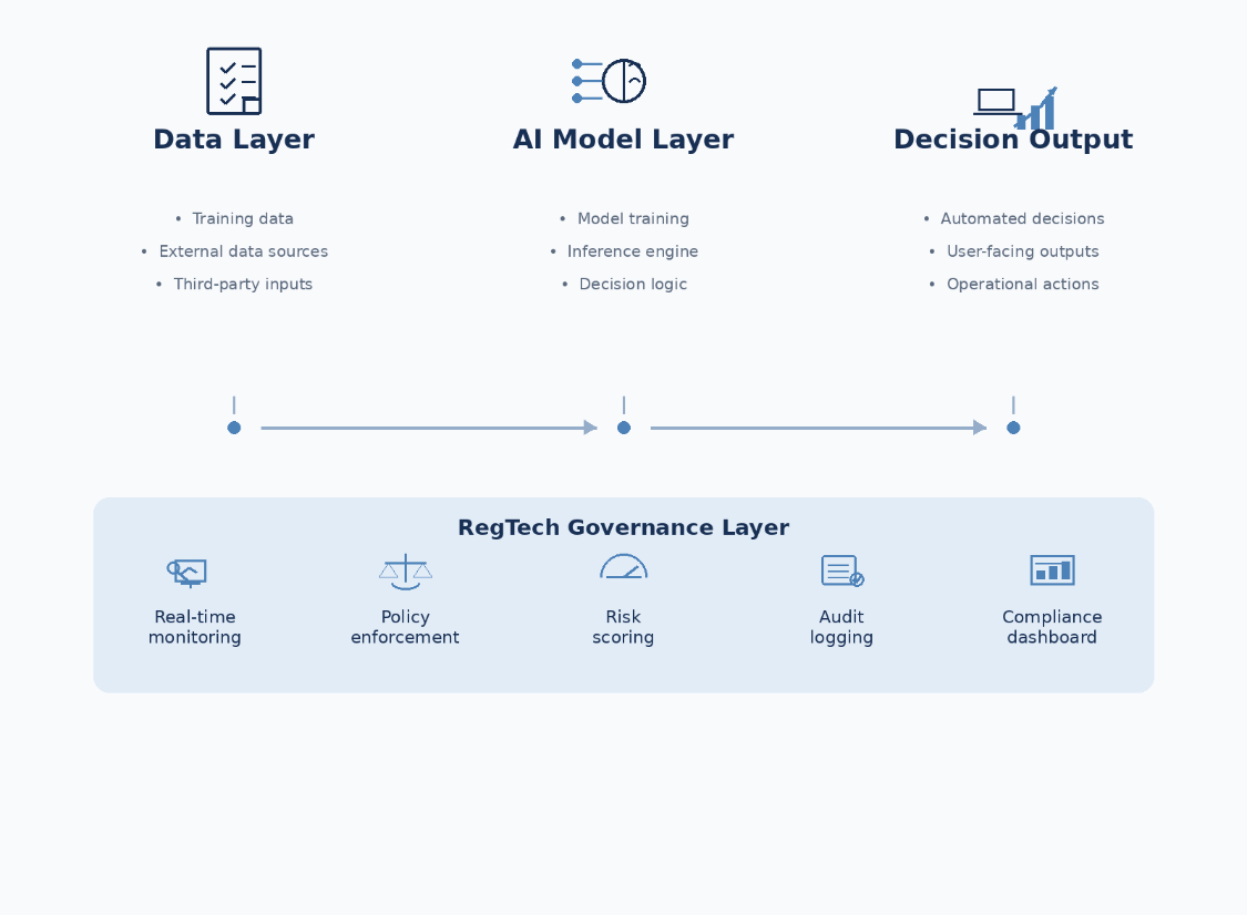 That is why 2026 feels like an important dividing line for regulatory technology. RegTech is no longer being discussed only in the familiar financial-crime or KYC context. It is increasingly being positioned as a practical operational layer for AI governance[4]: the software and system infrastructure that helps translate legal obligations, internal controls, documentation requirements, monitoring expectations, and evidence capture into something repeatable. In practice, it comes down to the difference between having a policy about responsible AI and having a technical environment that can show who approved what, which model was in production, what data it used, how risk was classified, what changed, what was logged, and whether the system still complies after conditions shift.