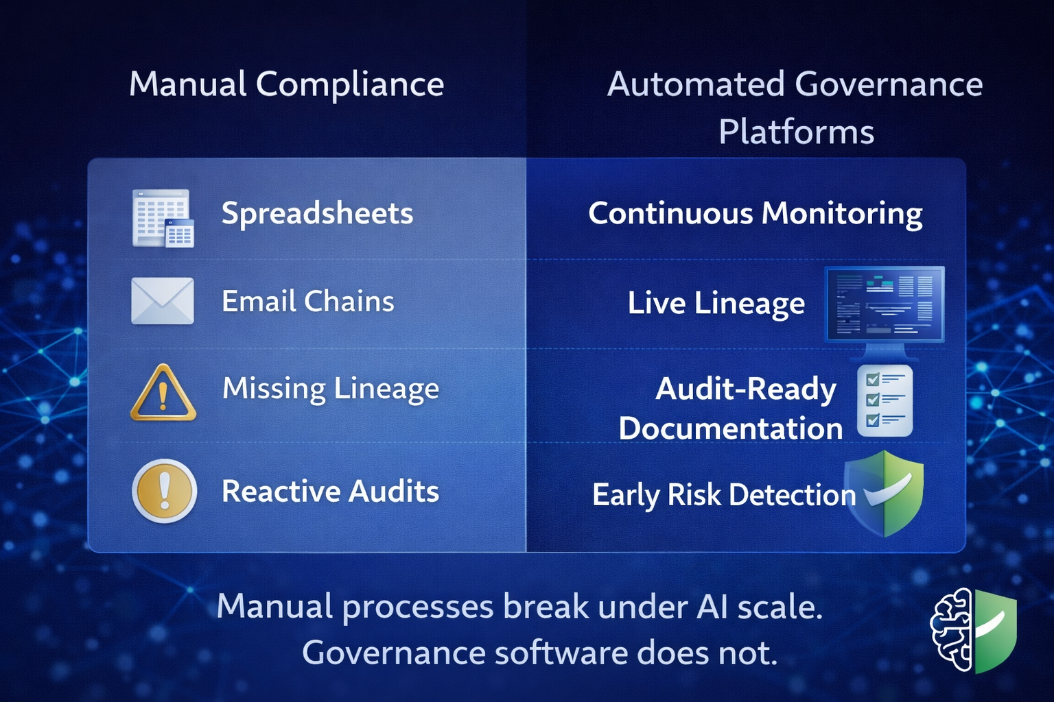 On the positive side, automated lineage dramatically reduces the time required to respond to audits or regulatory inquiries. It improves internal trust between engineering, data, and compliance teams by providing a shared source of truth. Over time, it also enables proactive risk identification — for example, detecting when a high-risk model begins consuming data from a new, unvetted source.