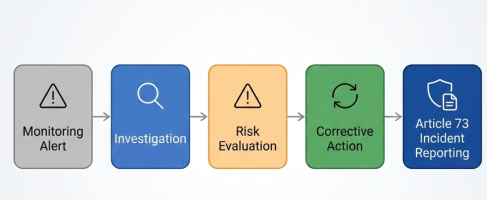 Monitoring has little value if it does not lead to action. The EU AI Act therefore treats post-market monitoring not only as an observational activity but also as a mechanism for identifying and addressing risks that emerge during the operational life of an AI system. Article 72 establishes the monitoring obligation, but its real significance becomes clearer when it is read alongside Article 73, which governs the reporting of serious incidents and malfunctioning systems.